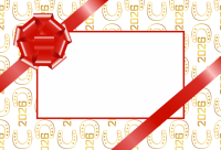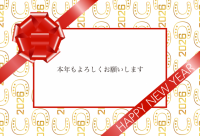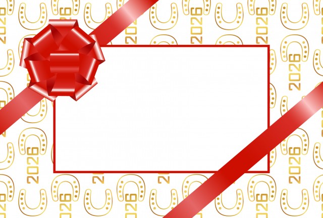 年賀状 2026 蹄鉄柄のプレゼント風はがき(文字ありなし)