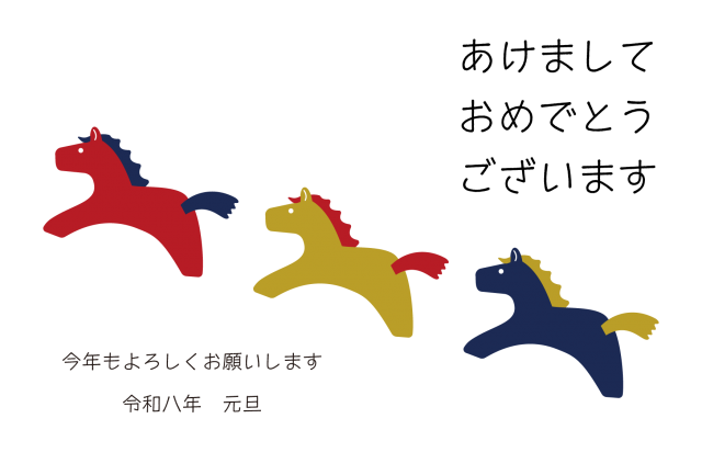 「年賀状 2026 三頭のかける馬(文字ありなし)」の無料イラスト素材・雛形素材、無料で使える「年賀状 2026 三頭のかける馬(文字ありなし)」を簡単ダウンロード出来ます。 素材ラボは「無料 イラスト」サイトとなり沢山の無料で使える素材がご利用頂けます。 「年賀状 2026 三頭のかける馬(文字ありなし)」の投稿は「おーとみーるこ」様よりご利用ありがとうございます。 ご投稿頂きました沢山の「年賀状」、「年賀はがき」、「午年」より探す。 「年賀状 2026 三頭のかける馬(文字ありなし)」関連の無料イラスト素材・雛形素材を投稿する事でポイントが獲得出来たり無料で「年賀状」、「年賀はがき」、「午年」関連の素材等を利用する、事が可能となります。 利用をする方は「会員登録(無料)」より「年賀状・はがき」関連を投稿で出来る方は「イラストレーター様登録」よりご登録くださいませ。 「年賀状・はがき」は日々イラストレーター様より最新の無料イラストが投稿されております。