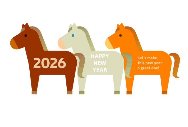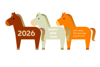 年賀状 2026年 鹿毛の馬×芦毛の馬×栗毛の馬 シンプル