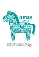 年賀状 2026年 青海波柄の和風ダーラナホース シンプル