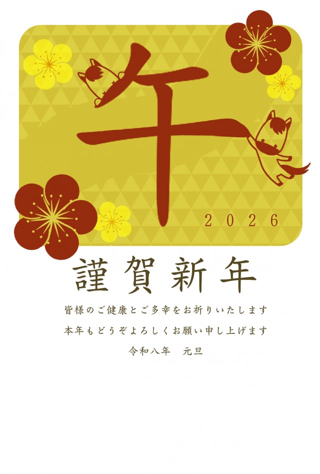 こちらは歩く馬と赤い梅の花が描かれた年賀状です。たくさんあるイラストの中からみつけていただきあり…