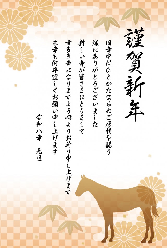 午年年賀状 2026年 菊と和柄の背景に馬のシルエットに関連するまとめ