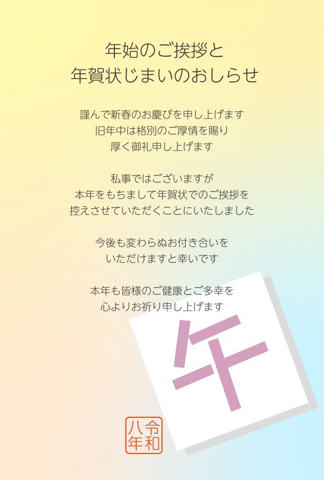 年賀状じまい 午の文字とグラデーション(文字ありなし)