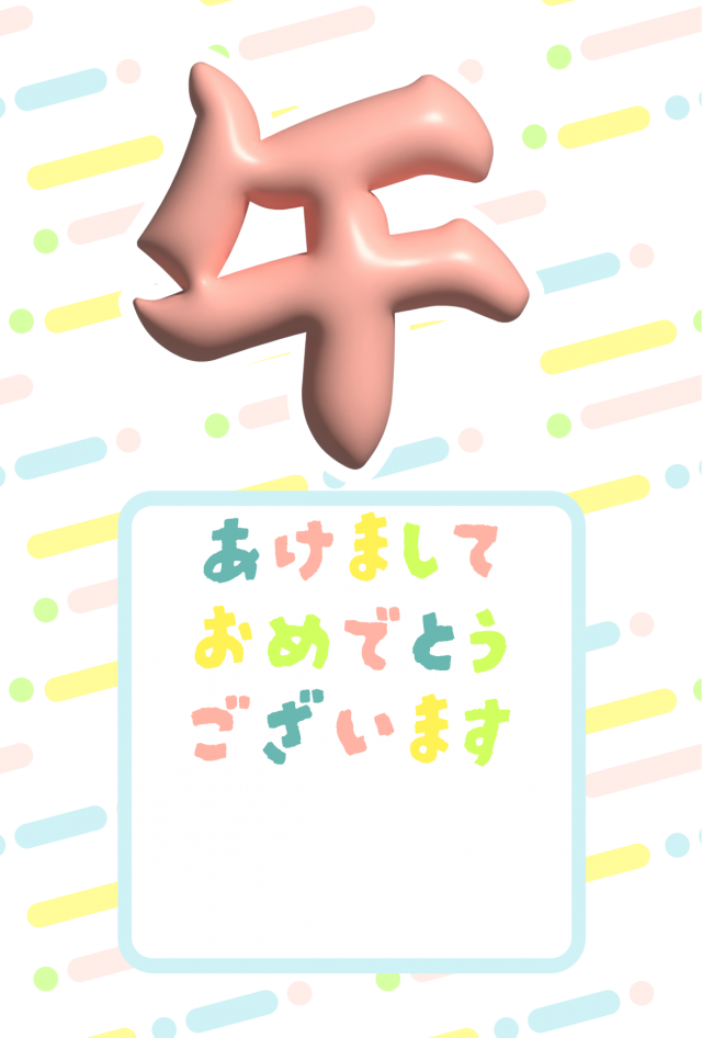 「2026年 年賀状 ぷっくり3D文字の午」の無料イラスト素材・雛形素材、無料で使える「2026年 年賀状 ぷっくり3D文字の午」を簡単ダウンロード出来ます。 素材ラボは「無料 イラスト」サイトとなり沢山の無料で使える素材がご利用頂けます。 「2026年 年賀状 ぷっくり3D文字の午」の投稿は「おーとみーるこ」様よりご利用ありがとうございます。 ご投稿頂きました沢山の「年賀状」、「年賀はがき」、「馬」より探す。 「2026年 年賀状 ぷっくり3D文字の午」関連の無料イラスト素材・雛形素材を投稿する事でポイントが獲得出来たり無料で「年賀状」、「年賀はがき」、「馬」関連の素材等を利用する、事が可能となります。 利用をする方は「会員登録(無料)」より「年賀状・はがき」関連を投稿で出来る方は「イラストレーター様登録」よりご登録くださいませ。 「年賀状・はがき」は日々イラストレーター様より最新の無料イラストが投稿されております。