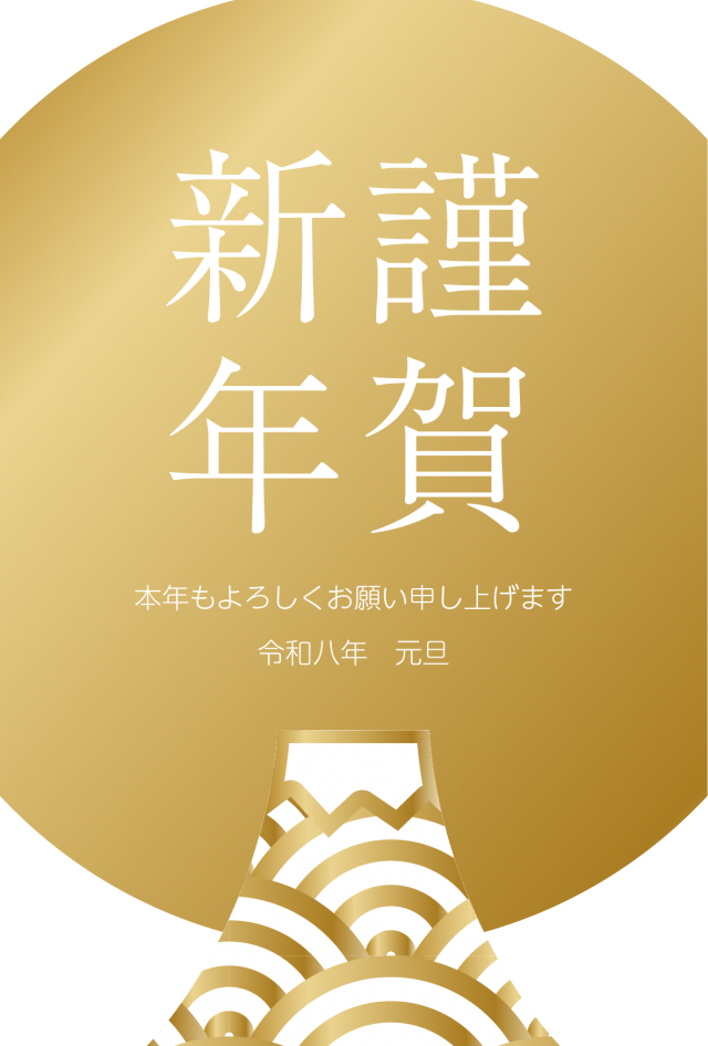 2026年 年賀状 金色の富士山と初日の出(文字ありなし)