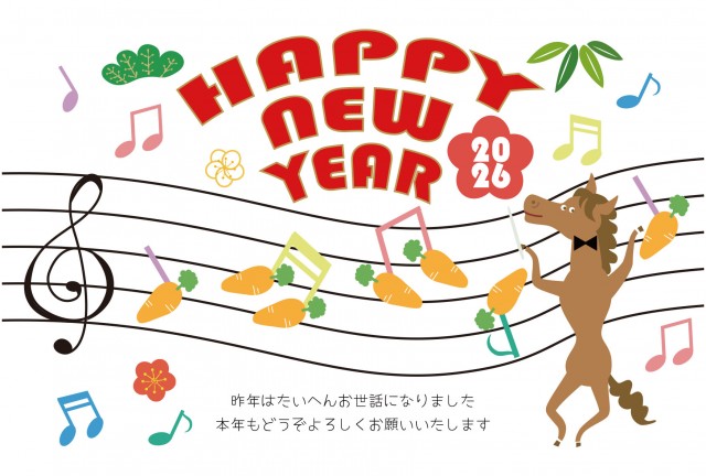 「馬が指揮を執るカワイイ年賀状2026」の無料イラスト素材・雛形素材、無料で使える「馬が指揮を執るカワイイ年賀状2026」を簡単ダウンロード出来ます。 素材ラボは「無料 イラスト」サイトとなり沢山の無料で使える素材がご利用頂けます。 「馬が指揮を執るカワイイ年賀状2026」の投稿は「kimimon」様よりご利用ありがとうございます。 ご投稿頂きました沢山の「年賀状」、「2026年」、「午年」より探す。 「馬が指揮を執るカワイイ年賀状2026」関連の無料イラスト素材・雛形素材を投稿する事でポイントが獲得出来たり無料で「年賀状」、「2026年」、「午年」関連の素材等を利用する、事が可能となります。 利用をする方は「会員登録(無料)」より「年賀状・はがき」関連を投稿で出来る方は「イラストレーター様登録」よりご登録くださいませ。 「年賀状・はがき」は日々イラストレーター様より最新の無料イラストが投稿されております。