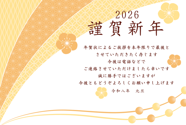 こちらは和柄の扇と松竹梅の年賀状じまいです。たくさんあるイラストの中からみつけていただきありがと…