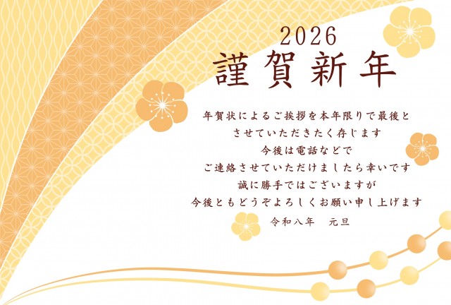 こちらは和柄と松竹梅のシンプルな年賀状じまいです。たくさんあるイラストの中からみつけていただきあ…