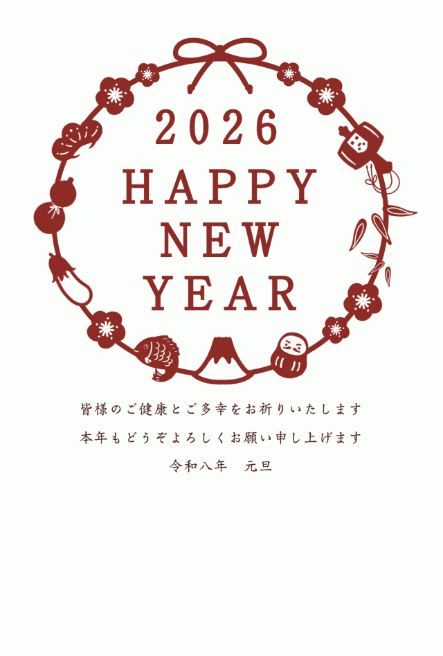 2026年 縁起物に囲まれたシンプルな年賀状に関連するまとめ