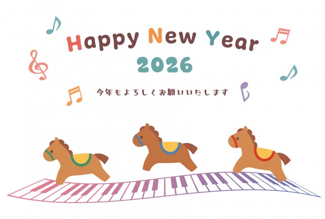 午年年賀状 2026年 鍵盤に飛び跳ねる馬に関連するまとめ