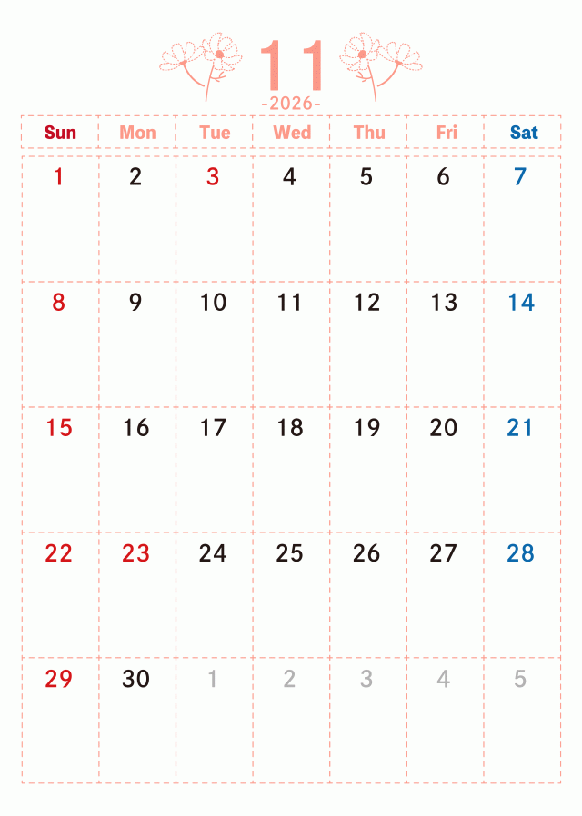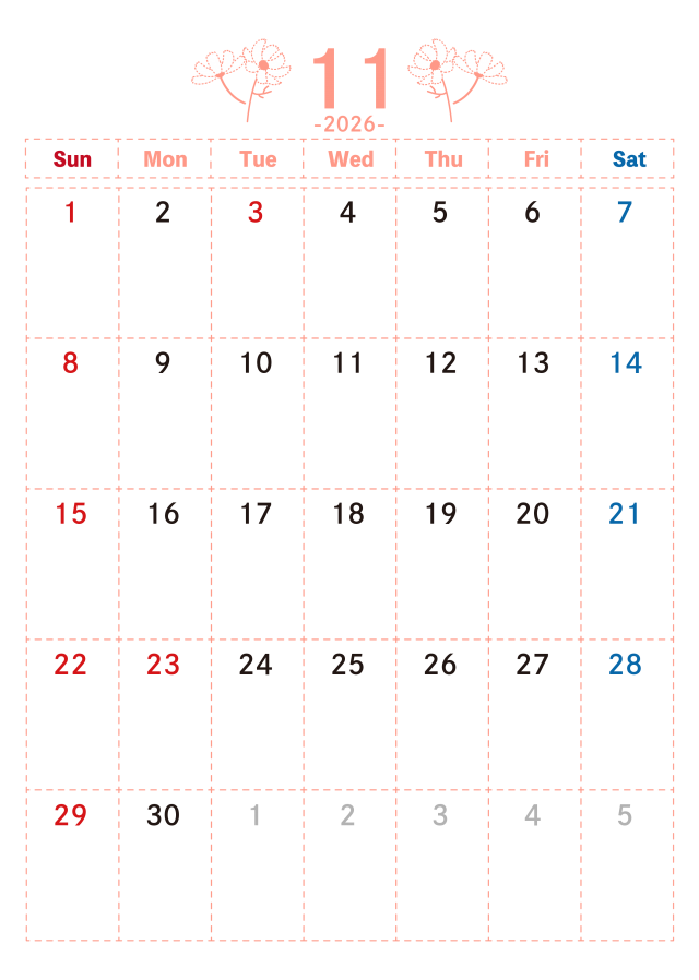 ドット線柄 2026年11月カレンダー コスモスに関連するまとめ