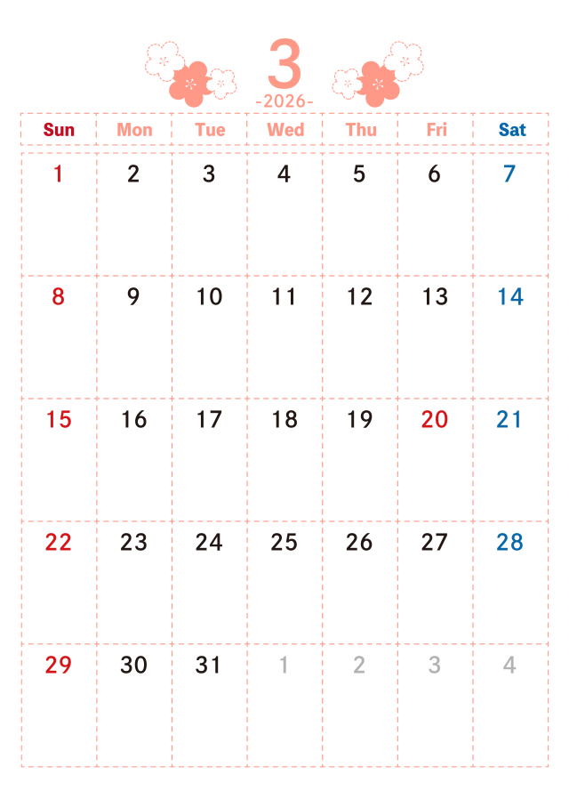 「ドット線柄 2026年3月カレンダー ひな祭りの桃の花」の無料イラスト素材・雛形素材、無料で使える「ドット線柄 2026年3月カレンダー ひな祭りの桃の花」を簡単ダウンロード出来ます。 素材ラボは「無料 イラスト」サイトとなり沢山の無料で使える素材がご利用頂けます。 「ドット線柄 2026年3月カレンダー ひな祭りの桃の花」の投稿は「おーとみーるこ」様よりご利用ありがとうございます。 ご投稿頂きました沢山の「カレンダー」、「月めくり」、「ドット」より探す。 「ドット線柄 2026年3月カレンダー ひな祭りの桃の花」関連の無料イラスト素材・雛形素材を投稿する事でポイントが獲得出来たり無料で「カレンダー」、「月めくり」、「ドット」関連の素材等を利用する、事が可能となります。 利用をする方は「会員登録(無料)」より「カレンダー」関連を投稿で出来る方は「イラストレーター様登録」よりご登録くださいませ。 「カレンダー」は日々イラストレーター様より最新の無料イラストが投稿されております。