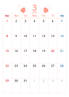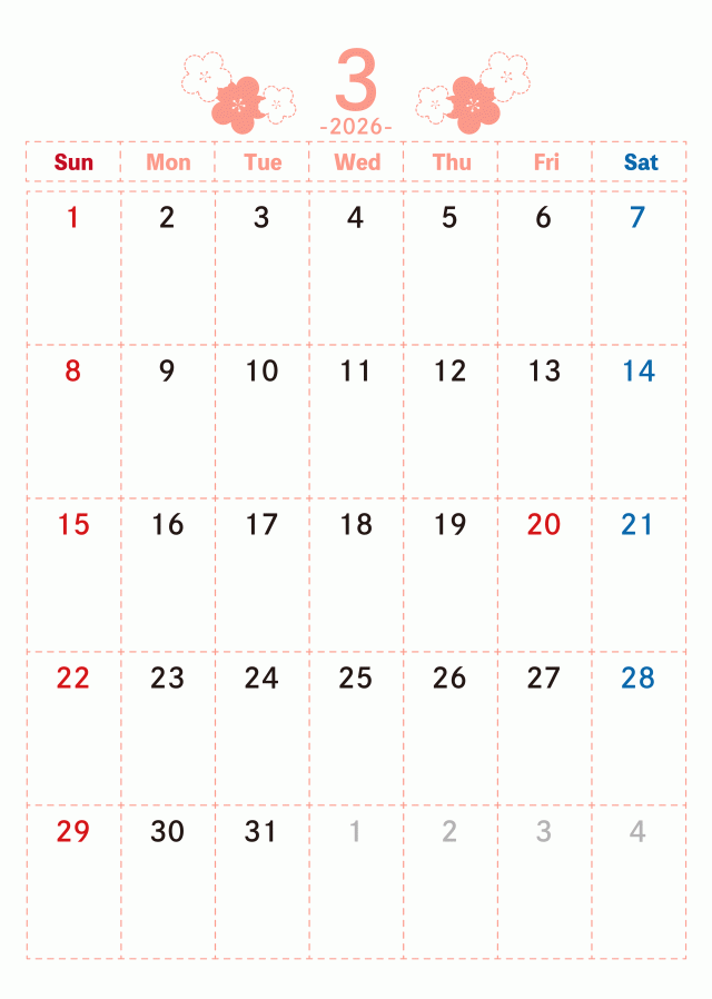 ドット線柄 2026年3月カレンダー ひな祭りの桃の花
