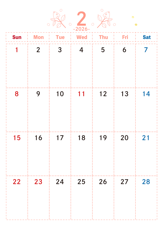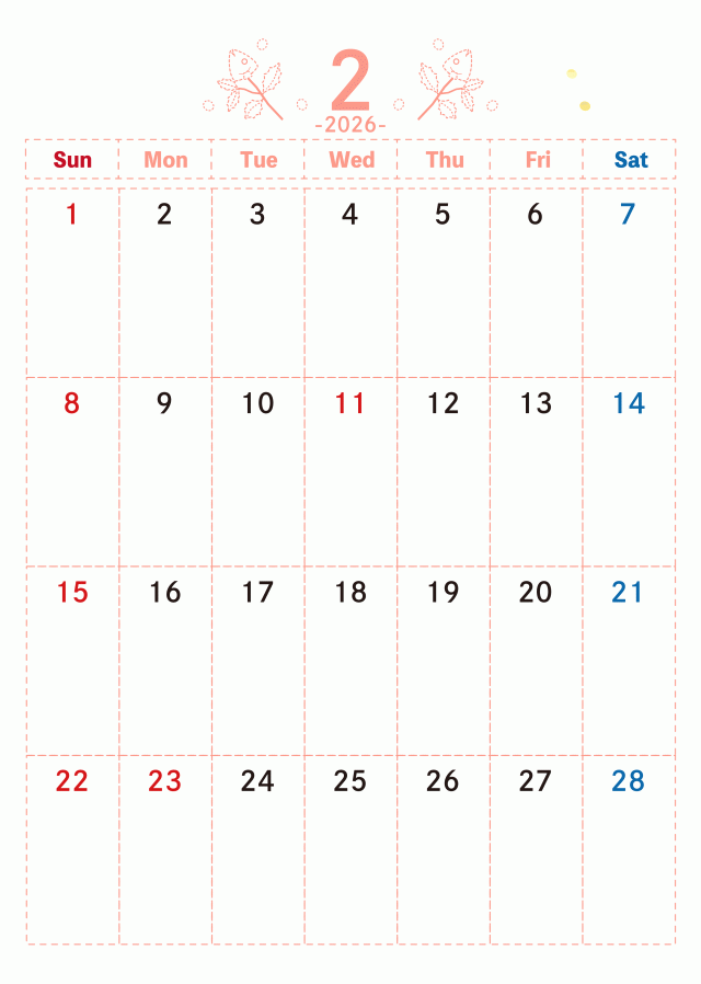 ドット線柄 2026年2月カレンダー 節分のいわしの頭と柊