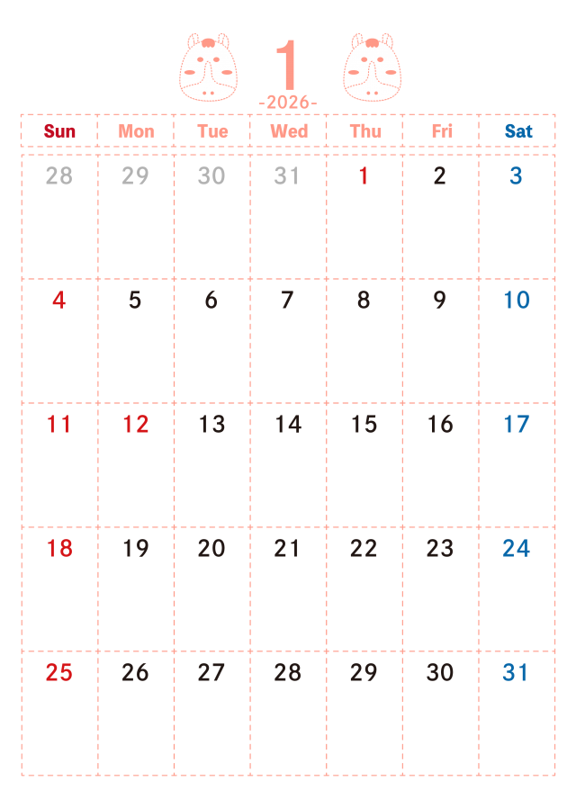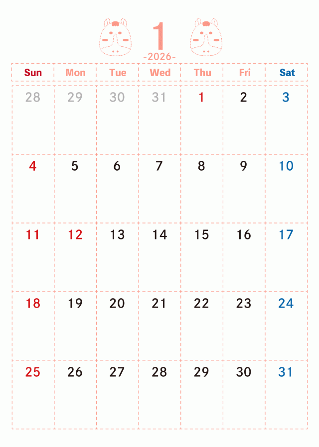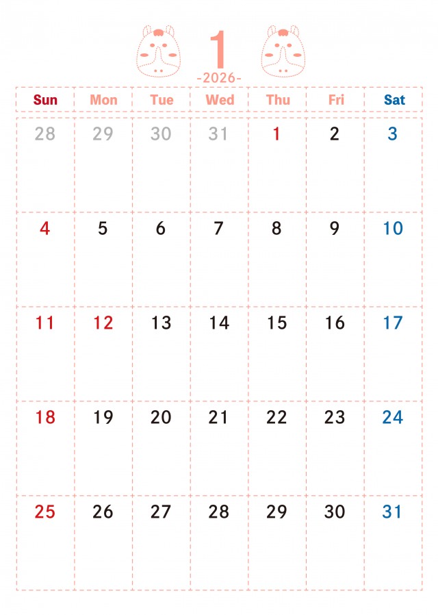 「ドット線柄 2026年1月カレンダー 干支の午」の無料イラスト素材・雛形素材、無料で使える「ドット線柄 2026年1月カレンダー 干支の午」を簡単ダウンロード出来ます。 素材ラボは「無料 イラスト」サイトとなり沢山の無料で使える素材がご利用頂けます。 「ドット線柄 2026年1月カレンダー 干支の午」の投稿は「おーとみーるこ」様よりご利用ありがとうございます。 ご投稿頂きました沢山の「カレンダー」、「月めくり」、「ドット」より探す。 「ドット線柄 2026年1月カレンダー 干支の午」関連の無料イラスト素材・雛形素材を投稿する事でポイントが獲得出来たり無料で「カレンダー」、「月めくり」、「ドット」関連の素材等を利用する、事が可能となります。 利用をする方は「会員登録(無料)」より「カレンダー」関連を投稿で出来る方は「イラストレーター様登録」よりご登録くださいませ。 「カレンダー」は日々イラストレーター様より最新の無料イラストが投稿されております。