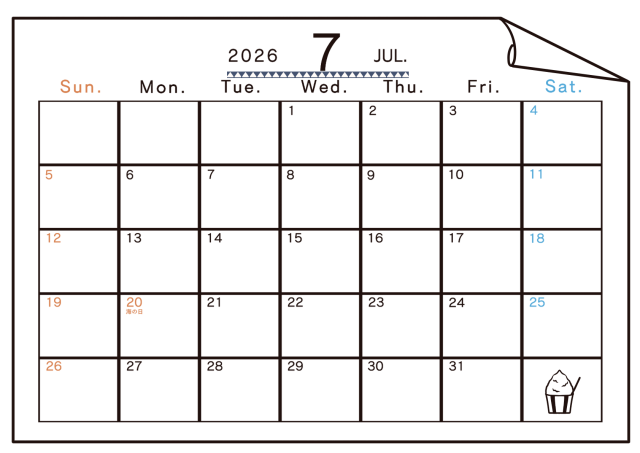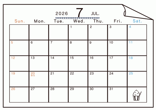 2026年7月 角がまるまった紙と12パターンの柄(季節のワンポイントつき)に関連するまとめ