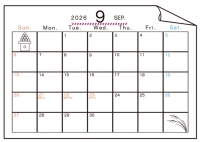 2026年9月 角がまるまった紙と12パターンの柄(季節のワンポイントつき)
