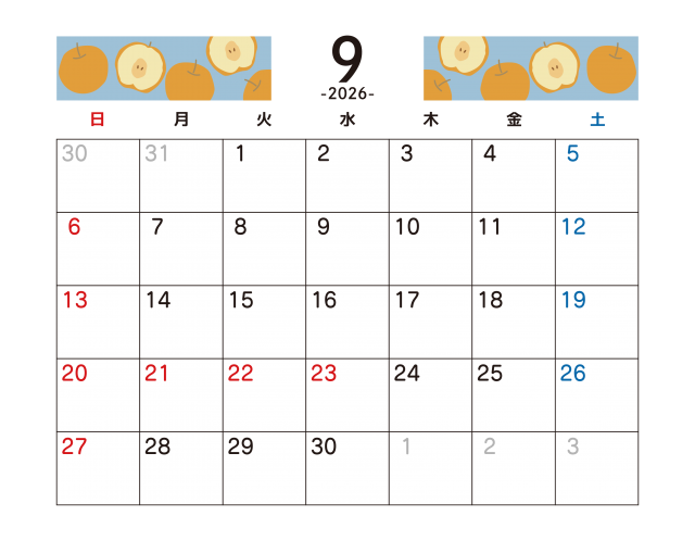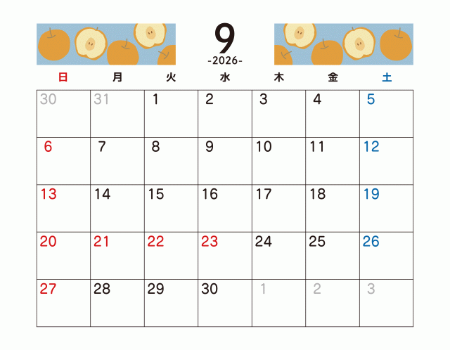 フルーツ柄 2026年9月カレンダー 和梨に関連するまとめ