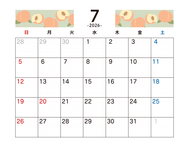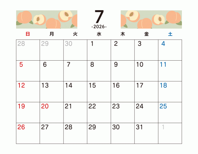 フルーツ柄 2026年7月カレンダー 桃に関連するまとめ
