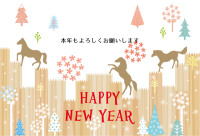 おしゃれ年賀状 北欧の森を駆ける馬のシルエット