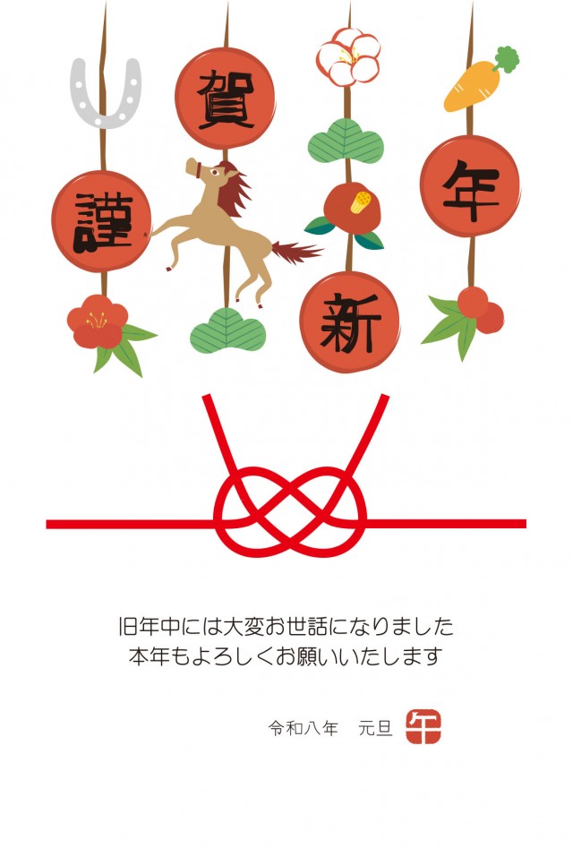 「お正月の吊るし飾りのベーシックな年賀状2026」の無料イラスト素材・雛形素材、無料で使える「お正月の吊るし飾りのベーシックな年賀状2026」を簡単ダウンロード出来ます。 素材ラボは「無料 イラスト」サイトとなり沢山の無料で使える素材がご利用頂けます。 「お正月の吊るし飾りのベーシックな年賀状2026」の投稿は「kimimon」様よりご利用ありがとうございます。 ご投稿頂きました沢山の「年賀状」、「2026年」、「午」より探す。 「お正月の吊るし飾りのベーシックな年賀状2026」関連の無料イラスト素材・雛形素材を投稿する事でポイントが獲得出来たり無料で「年賀状」、「2026年」、「午」関連の素材等を利用する、事が可能となります。 利用をする方は「会員登録(無料)」より「年賀状・はがき」関連を投稿で出来る方は「イラストレーター様登録」よりご登録くださいませ。 「年賀状・はがき」は日々イラストレーター様より最新の無料イラストが投稿されております。