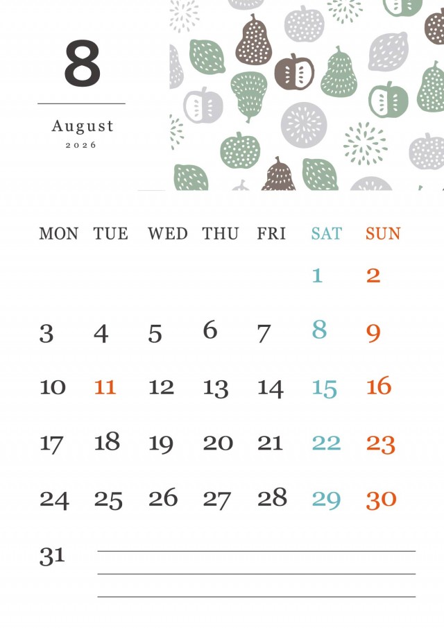 北欧風のボタニカル柄の月間カレンダー(2026年・8月)に関連するまとめ