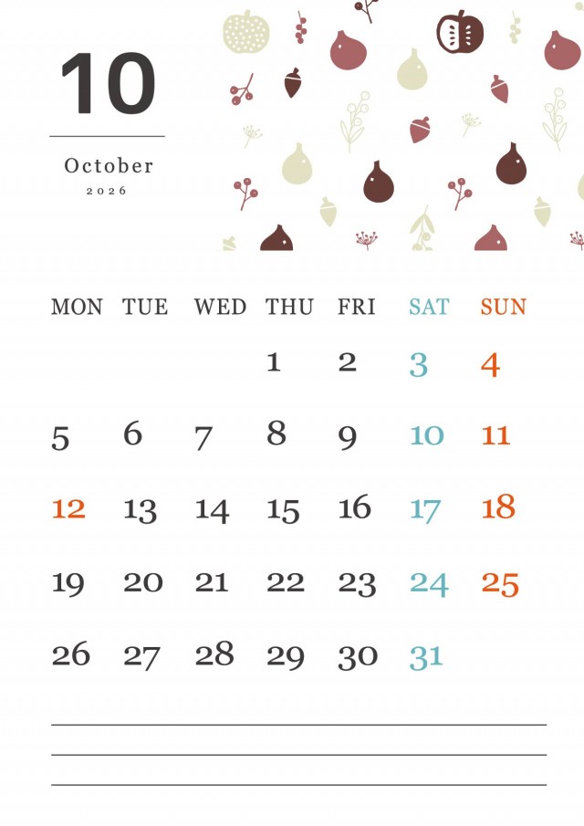 北欧風のボタニカル柄の月間カレンダー(2026年・10月)に関連するまとめ