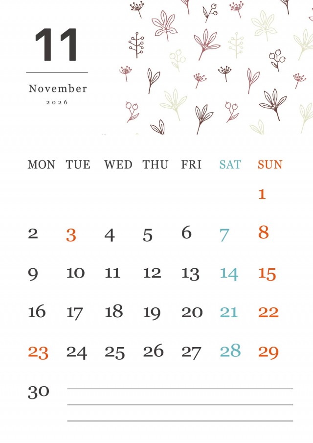 北欧風のボタニカル柄の月間カレンダー(2026年・11月)に関連するまとめ