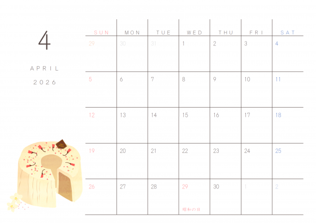 季節の美味しい洋菓子_2026年4月カレンダー_A4サイズに関連するまとめ