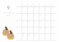 季節の美味しい洋菓子_2026年9月カレンダー_A4サイズ