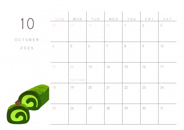 「季節の美味しい洋菓子_2026年10月カレンダー_A4サイズ」の無料イラスト素材・雛形素材、無料で使える「季節の美味しい洋菓子_2026年10月カレンダー_A4サイズ」を簡単ダウンロード出来ます。 素材ラボは「無料 イラスト」サイトとなり沢山の無料で使える素材がご利用頂けます。 「季節の美味しい洋菓子_2026年10月カレンダー_A4サイズ」の投稿は「ま め」様よりご利用ありがとうございます。 ご投稿頂きました沢山の「2026年」、「令和8年」、「10月」より探す。 「季節の美味しい洋菓子_2026年10月カレンダー_A4サイズ」関連の無料イラスト素材・雛形素材を投稿する事でポイントが獲得出来たり無料で「2026年」、「令和8年」、「10月」関連の素材等を利用する、事が可能となります。 利用をする方は「会員登録(無料)」より「カレンダー」関連を投稿で出来る方は「イラストレーター様登録」よりご登録くださいませ。 「カレンダー」は日々イラストレーター様より最新の無料イラストが投稿されております。