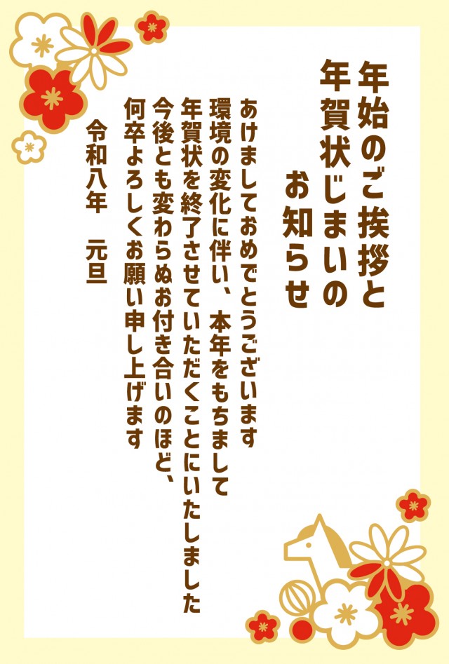2026年馬と花の縦書き年賀状じまいに関連するまとめ