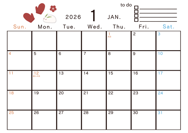 2026年 1月 季節のイラストのあるカレンダーに関連するまとめ