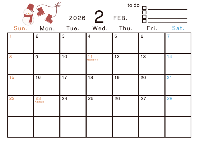 2026年 2月 季節のイラストのあるカレンダーに関連するまとめ