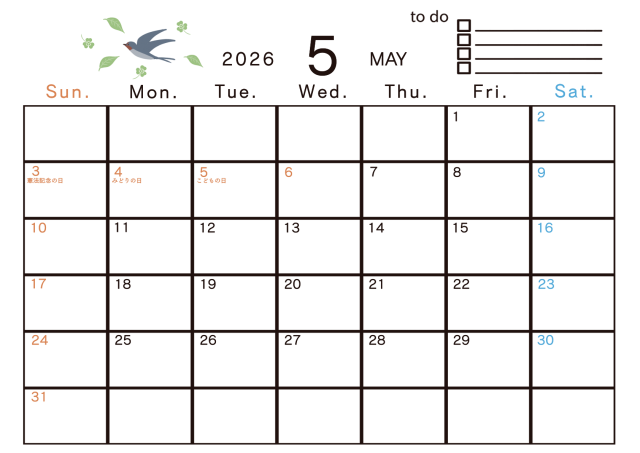 2026年 5月 季節のイラストのあるカレンダーに関連するまとめ