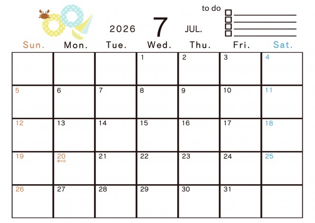 「2026年 7月 季節のイラストのあるカレンダー」の無料イラスト素材・雛形素材、無料で使える「2026年 7月 季節のイラストのあるカレンダー」を簡単ダウンロード出来ます。 素材ラボは「無料 イラスト」サイトとなり沢山の無料で使える素材がご利用頂けます。 「2026年 7月 季節のイラストのあるカレンダー」の投稿は「RinM」様よりご利用ありがとうございます。 ご投稿頂きました沢山の「2026年」、「7月」、「カレンダー」より探す。 「2026年 7月 季節のイラストのあるカレンダー」関連の無料イラスト素材・雛形素材を投稿する事でポイントが獲得出来たり無料で「2026年」、「7月」、「カレンダー」関連の素材等を利用する、事が可能となります。 利用をする方は「会員登録(無料)」より「カレンダー」関連を投稿で出来る方は「イラストレーター様登録」よりご登録くださいませ。 「カレンダー」は日々イラストレーター様より最新の無料イラストが投稿されております。