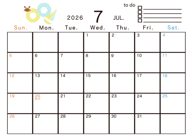 2026年 7月 季節のイラストのあるカレンダーに関連するまとめ