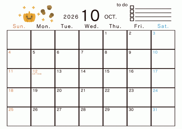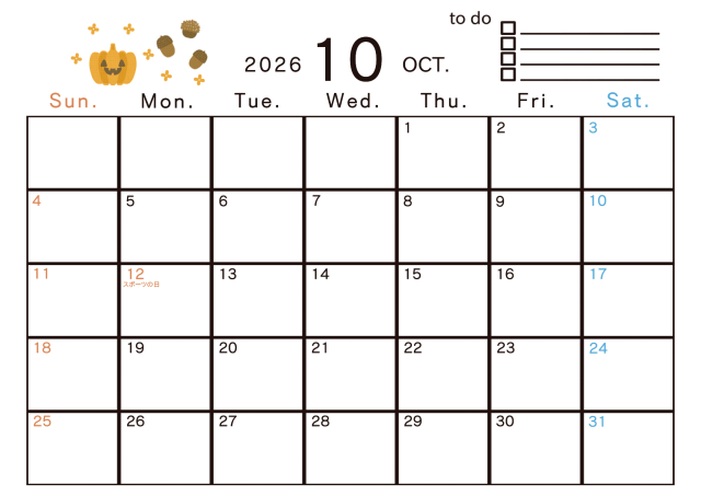 2026年 10月 季節のイラストのあるカレンダーに関連するまとめ