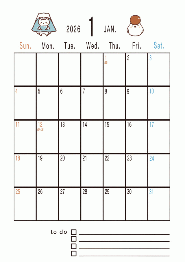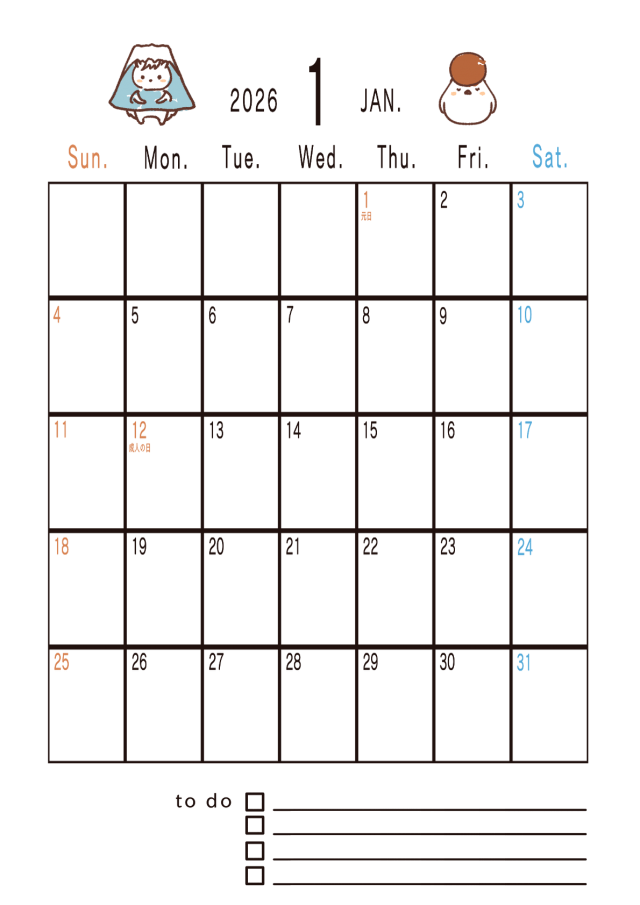 「2026年 1月 ハリネズミとヒヨコの一年」の無料イラスト素材・雛形素材、無料で使える「2026年 1月 ハリネズミとヒヨコの一年」を簡単ダウンロード出来ます。 素材ラボは「無料 イラスト」サイトとなり沢山の無料で使える素材がご利用頂けます。 「2026年 1月 ハリネズミとヒヨコの一年」の投稿は「RinM」様よりご利用ありがとうございます。 ご投稿頂きました沢山の「2026年」、「ハリネズミ」、「ヒヨコ」より探す。 「2026年 1月 ハリネズミとヒヨコの一年」関連の無料イラスト素材・雛形素材を投稿する事でポイントが獲得出来たり無料で「2026年」、「ハリネズミ」、「ヒヨコ」関連の素材等を利用する、事が可能となります。 利用をする方は「会員登録(無料)」より「カレンダー」関連を投稿で出来る方は「イラストレーター様登録」よりご登録くださいませ。 「カレンダー」は日々イラストレーター様より最新の無料イラストが投稿されております。