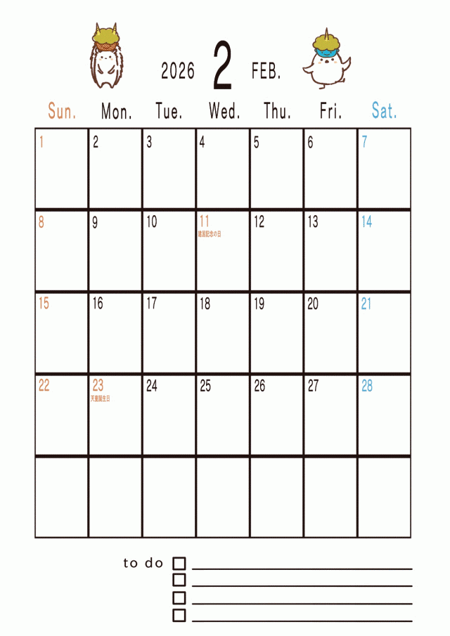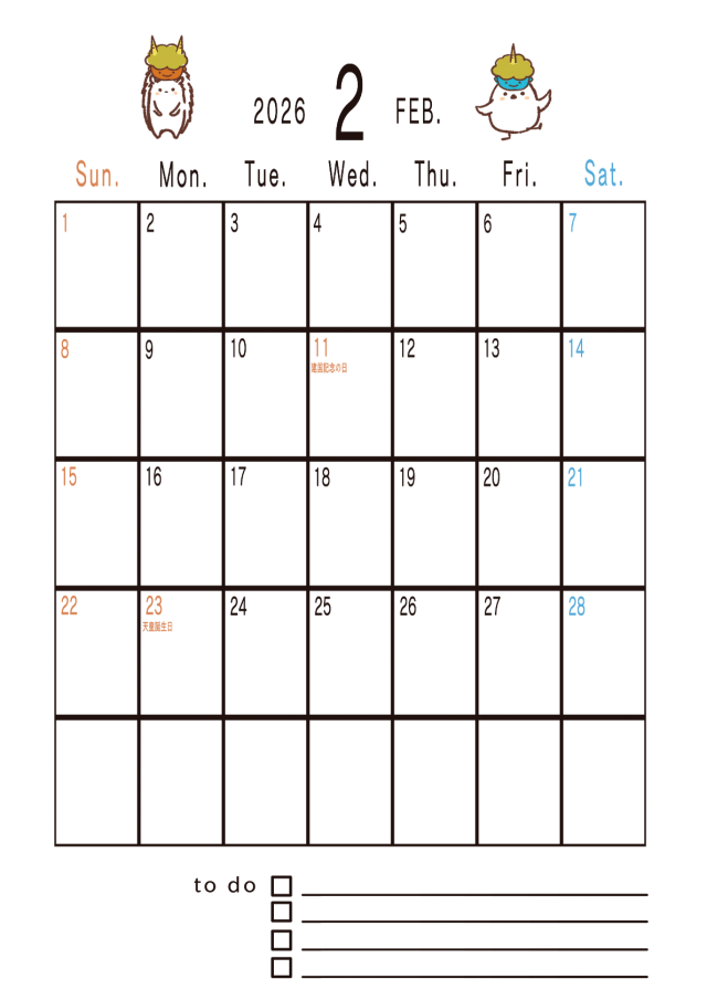 「2026年 2月 ハリネズミとヒヨコの一年」の無料イラスト素材・雛形素材、無料で使える「2026年 2月 ハリネズミとヒヨコの一年」を簡単ダウンロード出来ます。 素材ラボは「無料 イラスト」サイトとなり沢山の無料で使える素材がご利用頂けます。 「2026年 2月 ハリネズミとヒヨコの一年」の投稿は「RinM」様よりご利用ありがとうございます。 ご投稿頂きました沢山の「2026年」、「ハリネズミ」、「ヒヨコ」より探す。 「2026年 2月 ハリネズミとヒヨコの一年」関連の無料イラスト素材・雛形素材を投稿する事でポイントが獲得出来たり無料で「2026年」、「ハリネズミ」、「ヒヨコ」関連の素材等を利用する、事が可能となります。 利用をする方は「会員登録(無料)」より「カレンダー」関連を投稿で出来る方は「イラストレーター様登録」よりご登録くださいませ。 「カレンダー」は日々イラストレーター様より最新の無料イラストが投稿されております。