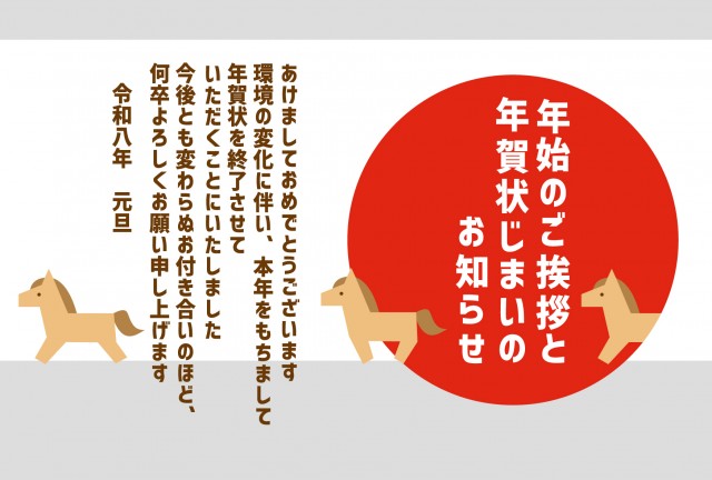 「2026年走る馬の年賀状じまい」の無料イラスト素材・雛形素材、無料で使える「2026年走る馬の年賀状じまい」を簡単ダウンロード出来ます。 素材ラボは「無料 イラスト」サイトとなり沢山の無料で使える素材がご利用頂けます。 「2026年走る馬の年賀状じまい」の投稿は「マメハル」様よりご利用ありがとうございます。 ご投稿頂きました沢山の「シンプル」、「年賀状」、「2026年」より探す。 「2026年走る馬の年賀状じまい」関連の無料イラスト素材・雛形素材を投稿する事でポイントが獲得出来たり無料で「シンプル」、「年賀状」、「2026年」関連の素材等を利用する、事が可能となります。 利用をする方は「会員登録(無料)」より「年賀状・はがき」関連を投稿で出来る方は「イラストレーター様登録」よりご登録くださいませ。 「年賀状・はがき」は日々イラストレーター様より最新の無料イラストが投稿されております。