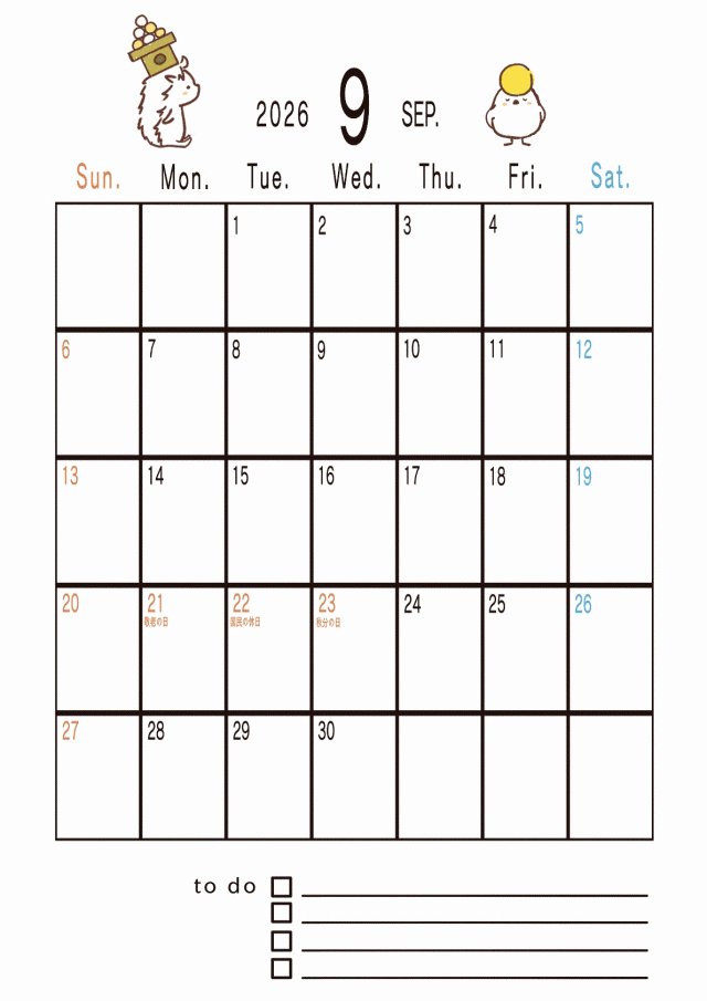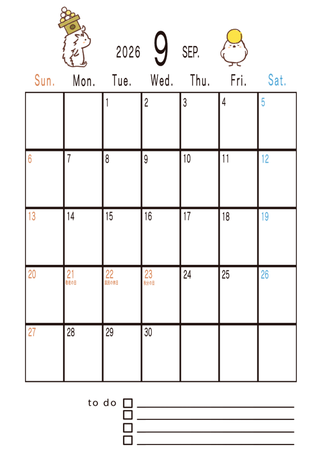 2026年 9月 ハリネズミとヒヨコの一年に関連するまとめ