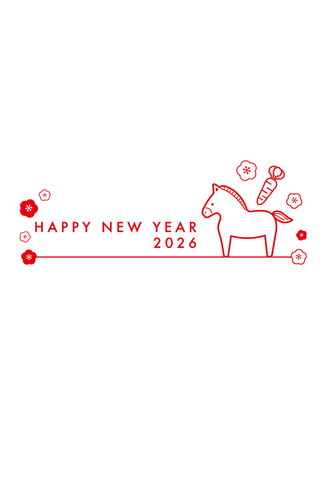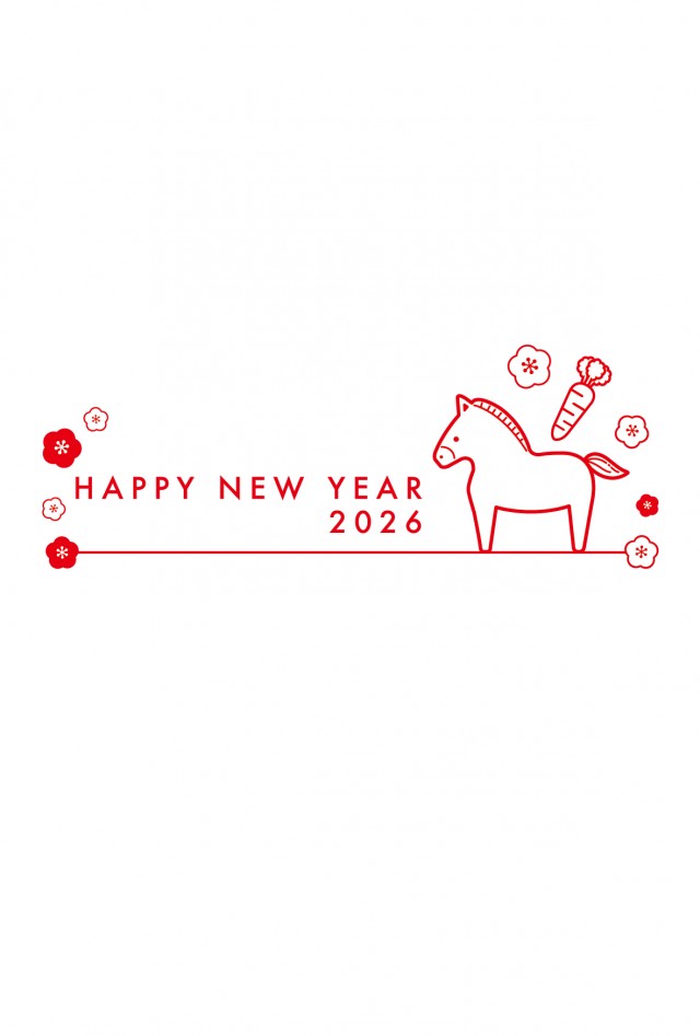 2026年午年年賀状テンプレート 縦 カジュアルでシンプルな赤い線の馬とにんじんに関連するまとめ