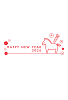 2026年午年年賀状テンプレート 縦 カジュアルでシンプルな赤い線の馬とにんじん