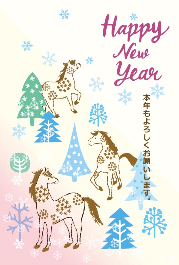 おしゃれ年賀状 北欧の森を歩く馬たちに関連するまとめ