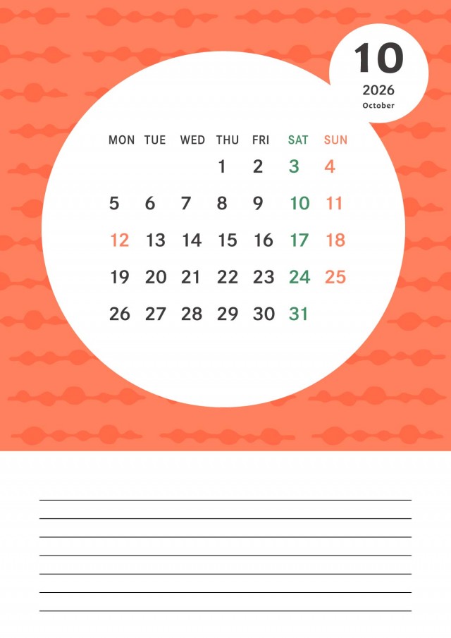 抽象パターンの月間カレンダー(2026年・10月)に関連するまとめ