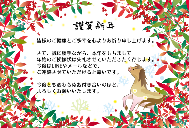 年賀状じまい 南天と雪にに囲まれた馬に関連するまとめ
