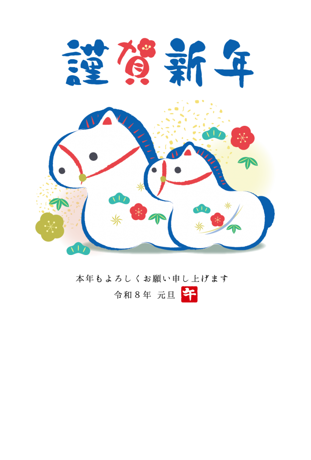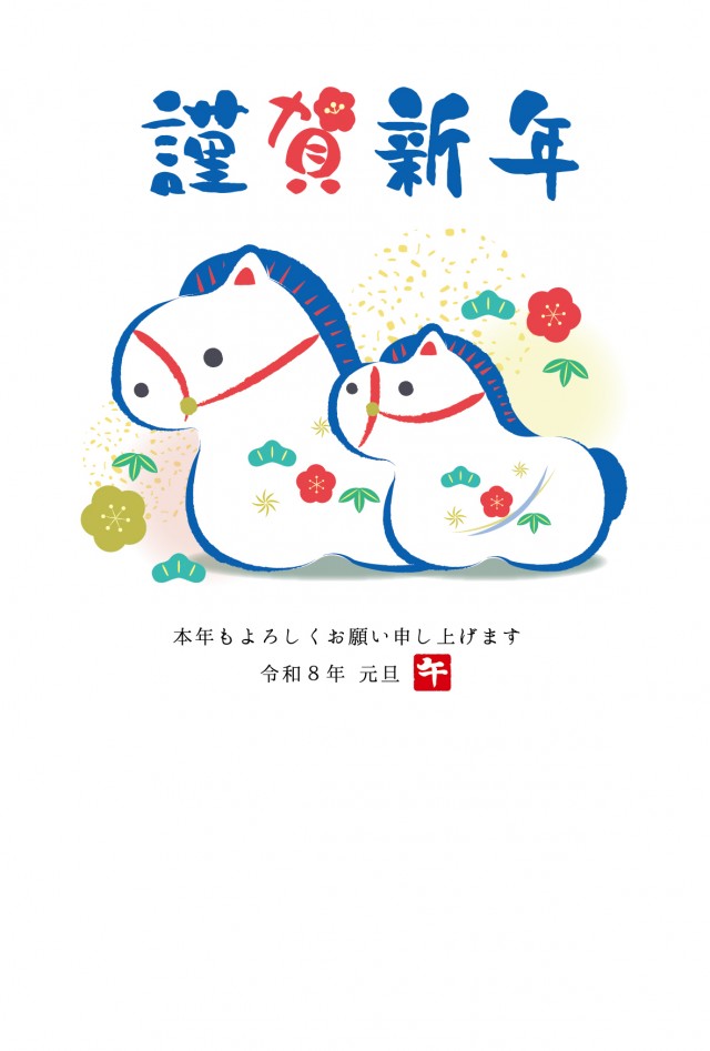 2026年午年年賀状テンプレート 和風な白い置物風馬の親子に関連するまとめ