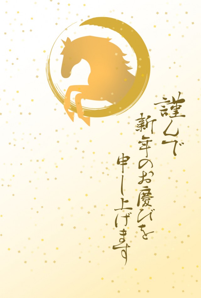 白馬の置物のイラストが描かれています。2026年の午年の年賀状としてご利用いただけます。zipフ…