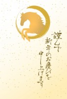 駆ける馬のシルエットイラストが描かれています。2026年の午年の年賀状としてご利用いただけます。…